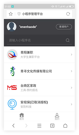 一個平臺管理賬戶下所有小程序