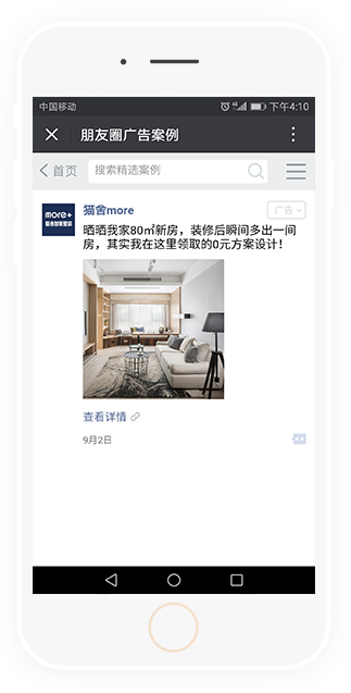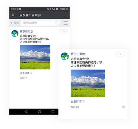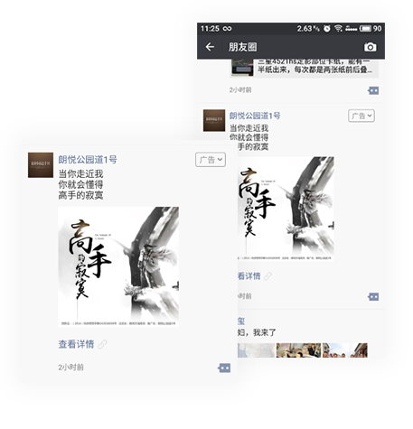 原生推廣頁(yè)廣告由微信朋友圈外層展示和內(nèi)層原生推廣頁(yè)兩部